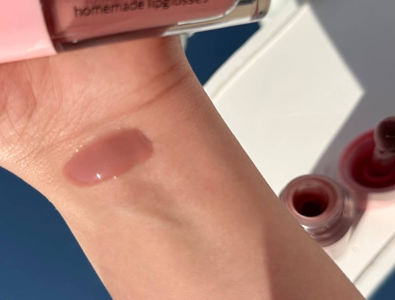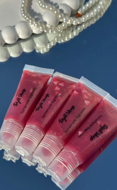Homemade lip gloss crafted with love for soft, shiny lips.